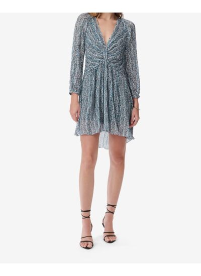 Quels sont les détails de design qui distinguent cette robe ? Elle se caractérise par un col en V flatteur, des manches longues et un imprimé graphique moderne qui apporte une touche d’originalité à un modèle classique.