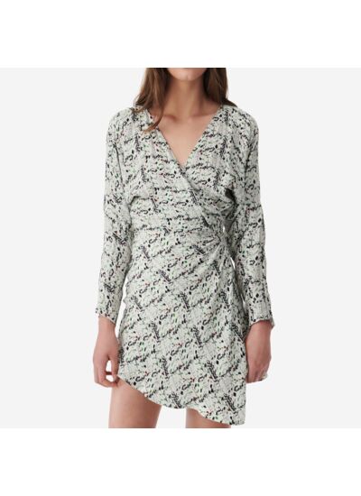 Quelle taille choisir pour cette robe ? Le mannequin mesure 1m79 et porte une taille S. La coupe portefeuille permet un ajustement confortable, nous recommandons de choisir votre taille habituelle pour un tombé parfait.