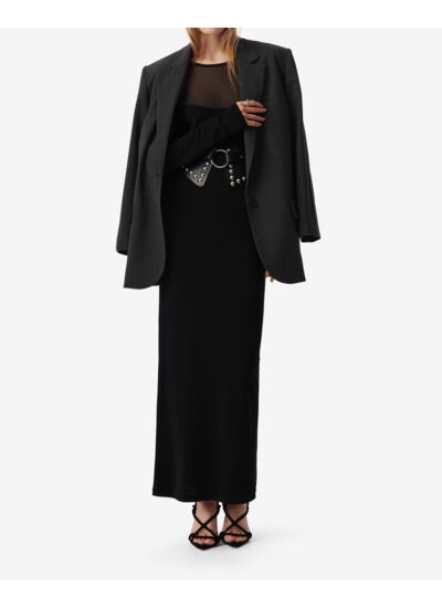 Consultez le guide de taille IroRobe longue DANIA. Col rond et coupe ajustée. Détail en transparence sur le devant et le dos. Fabriquée au Portugal.