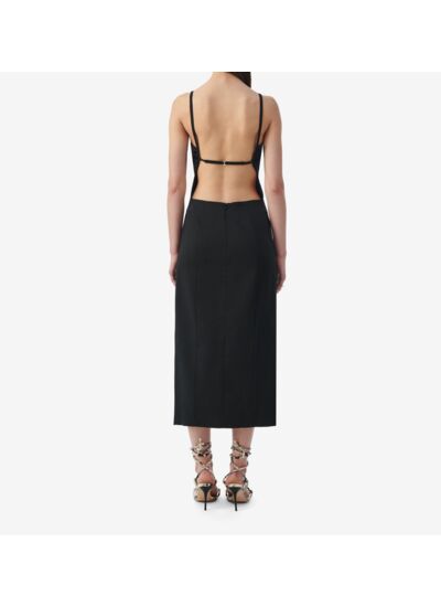 Consultez le guide de taille IroRobe longue à bretelles ZYRA. Détails de découpes sur la poitrine et ouverture plongeante dans le dos. Fabriquée en Europe.