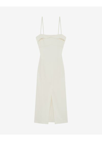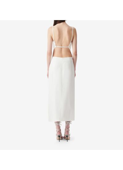 Consultez le guide de taille IroRobe longue à bretelles ZYRA. Détails de découpes sur la poitrine et ouverture plongeante dans le dos. Fabriquée en Europe.