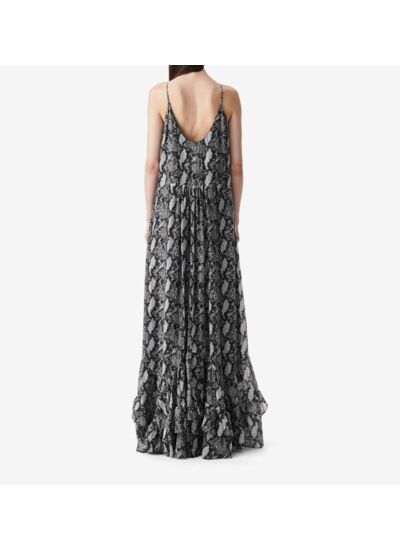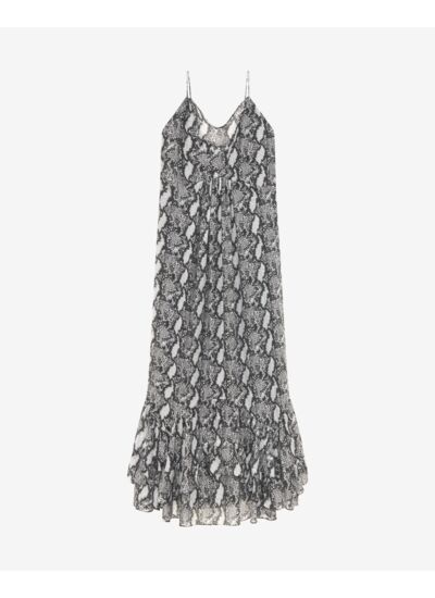 Consultez le guide de taille IroRobe longue à imprimé python AROUBA. Fines bretelles réglables et détails de volants sur le bas.