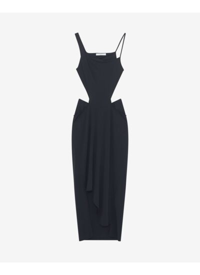 La robe BILLY présente une coupe ajustée sur le haut qui met en valeur la silhouette, tandis que le bas s’élargit avec une coupe portefeuille, offrant confort et élégance.
