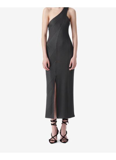 Consultez le guide de taille IroRobe midi asymétrique à une épaule RALANI. Détails côtelés avec fente profonde sur le devant. Fabriquée en Europe.