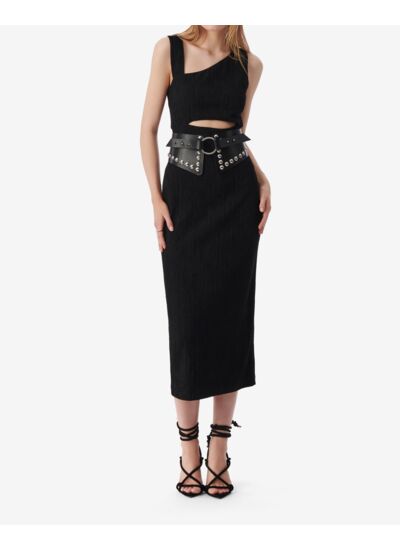 Comment est la coupe de cette robe midi ? La robe KIRRA présente une coupe tube qui épouse les formes du corps, avec une asymétrie élégante et des ouvertures stratégiques dans le dos et sous la poitrine pour un style moderne et audacieux.