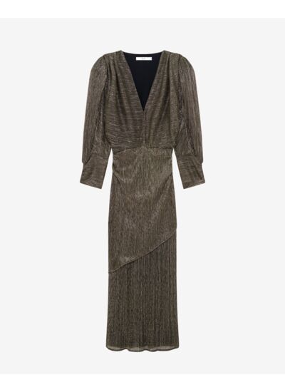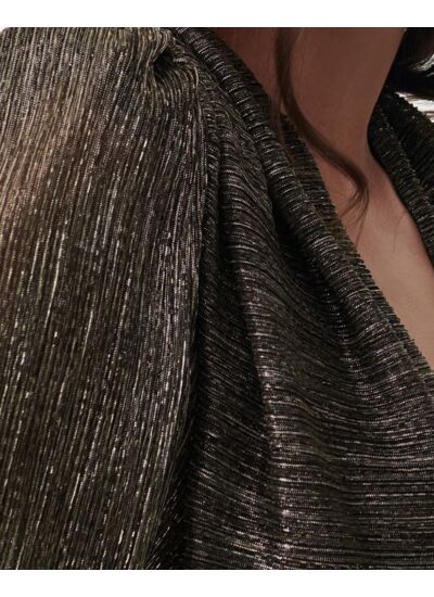 Cette robe convient-elle pour des occasions spéciales ? Oui, son tissu lurex et sa coupe sophistiquée en font un choix idéal pour les événements habillés, soirées ou cocktails où vous souhaitez allier élégance et confort.