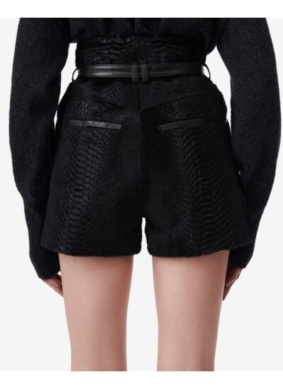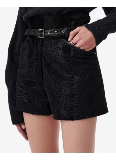 Comment entretenir ce short en cuir effet serpent ? Pour préserver l’aspect et la texture du cuir, nettoyez-le avec un chiffon humide et évitez l’exposition prolongée à l’humidité ou à la chaleur. Un entretien professionnel est recommandé pour un nettoyage en profondeur.