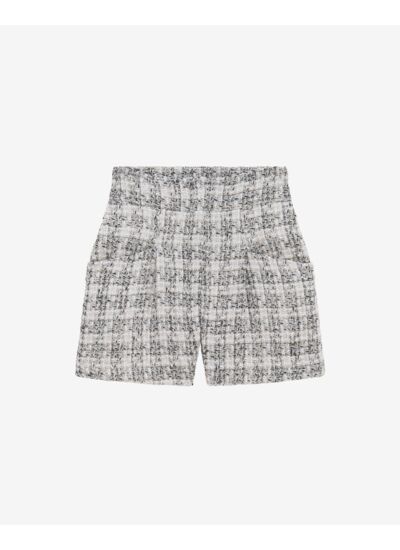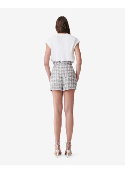 Ce short en tweed est-il adapté à un usage quotidien ? Oui, sa coupe droite et sa taille haute offrent un confort optimal tout en restant élégantes, ce qui le rend parfait pour un look casual chic au quotidien ou pour des occasions plus habillées. De quelles matières est composé ce short ? Il est fabriqué à partir d’un mélange de 32% coton, 30% polyester, 25% acrylique, 8% polyamide et 5% fibres métallisées, avec une doublure en 52% viscose et 48% coton, garantissant à la fois durabilité, confort et un aspect texturé unique. Comment entretenir ce short en tweed ? Pour préserver la qualité des matières et la structure du tweed, il est recommandé de suivre les instructions de lavage indiquées sur l’étiquette, généralement un nettoyage à sec ou un lavage délicat à froid, afin d’éviter tout rétrécissement ou déformation. Ce short est-il fidèle à la taille habituelle ? Oui, la coupe droite et la taille haute respectent les standards de taille classiques, il est conseillé de choisir votre taille habituelle pour un ajustement parfait. Où est fabriqué ce short ? Ce modèle est fabriqué en Pologne, garantissant un savoir-faire européen reconnu pour la qualité des finitions et la rigueur dans la fabrication.