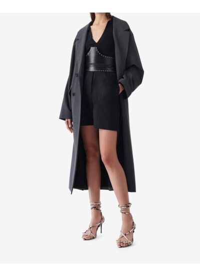 Consultez le guide de taille IroShort taille haute CARRINA. Coupe droite et plis sur les côtés avant. Fabriqué en Europe.
