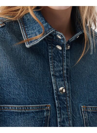 Comment se ferme cette surchemise ? Elle se ferme facilement grâce à une rangée de boutons-pression, pratique pour un enfilage rapide tout en conservant un style soigné.