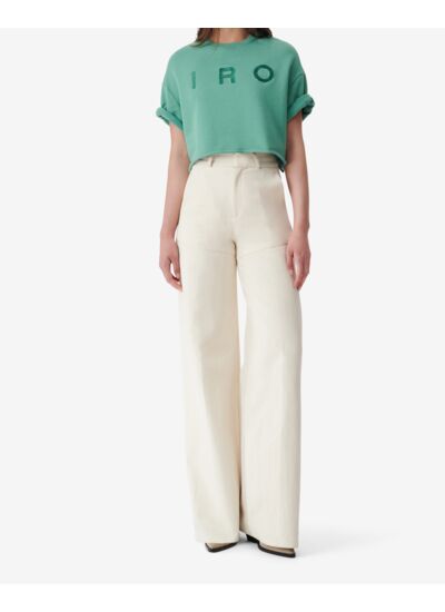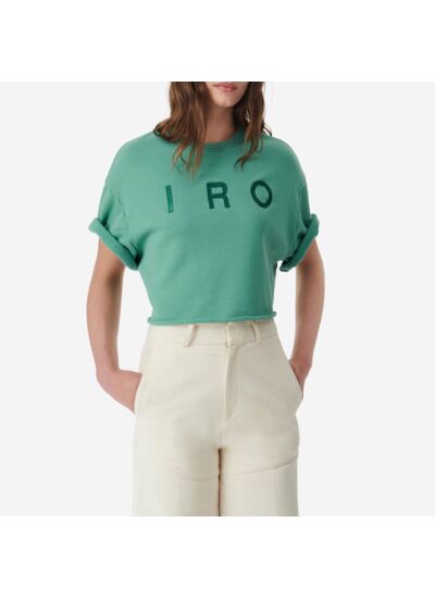 Ce sweat col rond OLINDA est-il adapté aux saisons chaudes ? Ce modèle à manches courtes et en 100% coton offre une excellente respirabilité, idéal pour les températures modérées à chaudes tout en conservant un style décontracté et élégant. Comment entretenir ce sweat pour préserver sa qualité ? Lavez-le en machine à 30 degrés avec des couleurs similaires, évitez le sèche-linge pour préserver la broderie et la matière naturelle, et repassez à basse température si nécessaire. Quelle est la coupe et la taille recommandée pour ce sweat ? Le sweat OLINDA présente une coupe droite classique, nous conseillons de prendre votre taille habituelle pour un porté confortable et moderne. Ce sweat est-il fabriqué de manière responsable ? Oui, il est confectionné au Portugal, garantissant un savoir-faire de qualité et des conditions de production respectueuses. Ce sweat peut-il s’intégrer facilement dans une garde-robe casual ? Absolument, son design épuré avec le logo brodé IRO en fait une pièce polyvalente qui s’associe aisément avec un jean, un pantalon chino ou une jupe pour un look urbain et tendance.