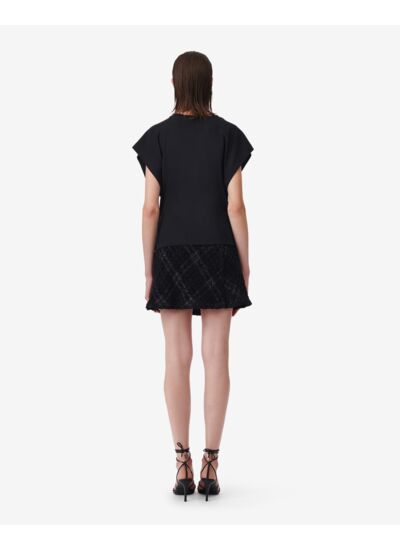 Comment entretenir ce t-shirt pour préserver ses détails ? Lavez-le en machine à basse température avec des couleurs similaires, évitez le sèche-linge pour conserver la forme et les plis au niveau des épaules.
