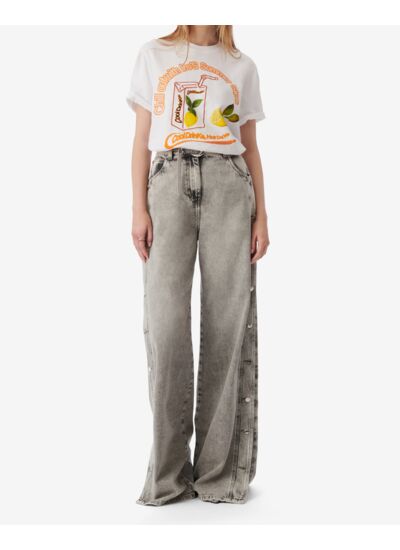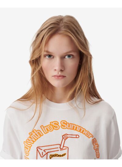Consultez le guide de taille IroT-shirt imprimé citron NELITA. Col rond et coupe oversize. Fabriqué au Portugal.