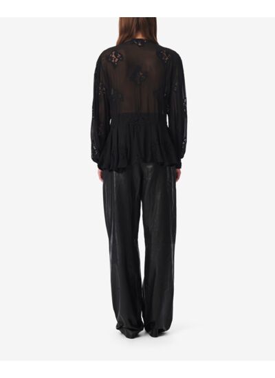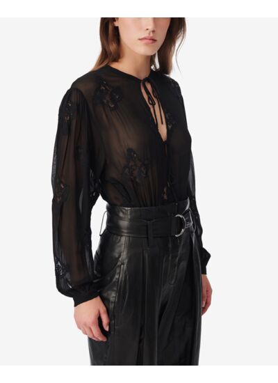 Ce top est-il adapté aux saisons chaudes ? Ce top brodé à manches longues est conçu dans un tissu aérien et transparent, offrant légèreté et respirabilité, ce qui le rend idéal pour les saisons chaudes tout en apportant une touche élégante.