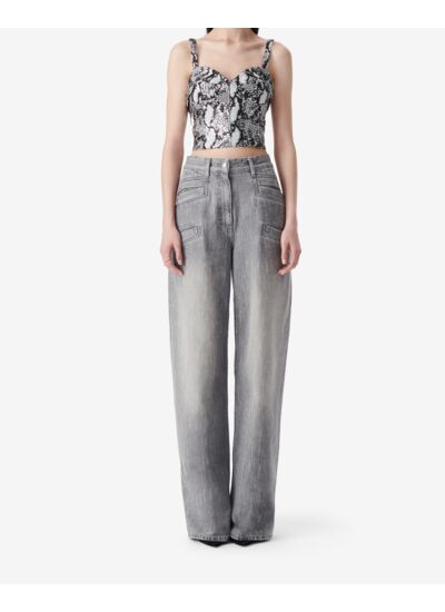 Consultez le guide de taille IroTop effet corset à bretelles ALISSIA. Sequins effet python et coupe courte.