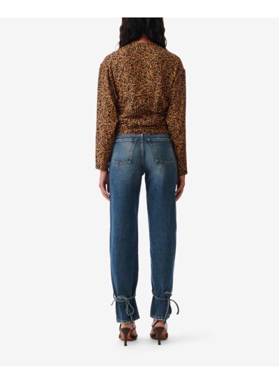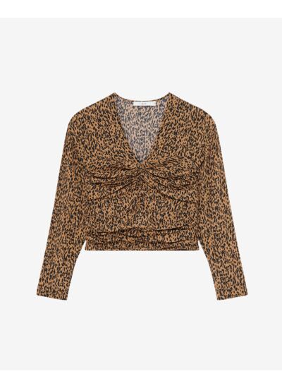 Ce top est-il fidèle à la taille indiquée ? Ce modèle présente une coupe ajustée et est resserré à la taille, il est conseillé de choisir votre taille habituelle pour un rendu élégant et près du corps. Comment entretenir ce top en viscose et soie ? Pour préserver la qualité des matières, privilégiez un lavage à la main ou un cycle délicat à froid, évitez le sèche-linge et repassez à basse température pour garder la douceur et la tenue du tissu. Ce top convient-il pour une tenue de soirée ? Absolument, son imprimé léopard sophistiqué et sa coupe froncée avec col V apportent une touche chic et féminine, idéale pour un look élégant et moderne. Le zip invisible gêne-t-il le confort ? Non, le zip latéral est discret et parfaitement intégré, il facilite l’enfilage sans compromettre le confort ni l’esthétique du vêtement. Ce top est-il adapté à un usage quotidien ? Oui, grâce à sa composition en viscose et soie, il offre une sensation agréable sur la peau et une coupe ajustée qui s’adapte aussi bien à un style casual qu’à une tenue plus habillée.