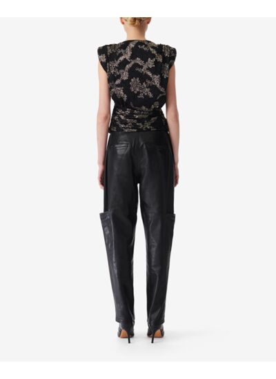 Quelle coupe offre ce top et comment le porter ? Le col V associé aux épaulettes crée une silhouette structurée et féminine, idéale pour être portée aussi bien en journée avec un jean qu’en soirée sous une veste élégante.