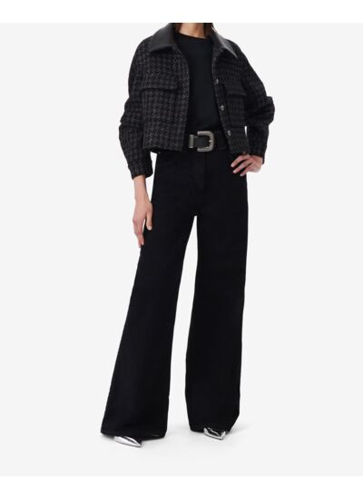 La veste Saloma présente une coupe courte et structurée, idéale pour un look moderne et élégant. Son col chemise en cuir apporte une touche sophistiquée, tandis que les manches pendantes et les poches plaquées avec rabats renforcent son caractère unique et pratique.