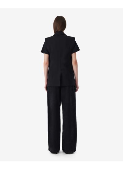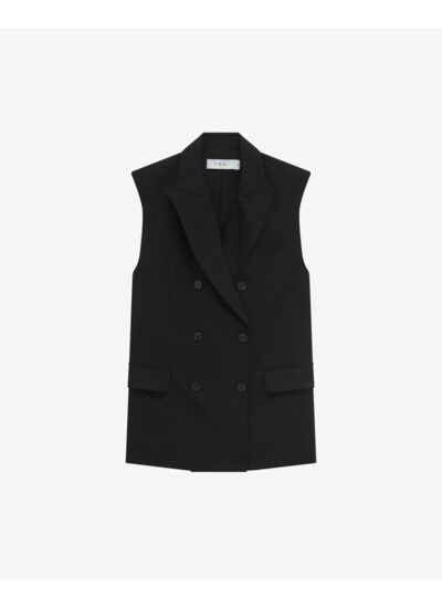 Comment porter la veste Anilah pour un look réussi ? Sa coupe sans manches et son double boutonnage permettent de la porter aussi bien sur une chemise ajustée pour un style professionnel que sur un pull fin pour une tenue casual chic. Elle s’adapte facilement à différentes occasions grâce à son design épuré.