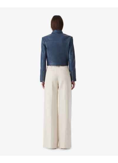 Cette veste en cuir est-elle adaptée à un usage quotidien ? Oui, sa coupe cintrée et son cuir d’agneau souple garantissent confort et élégance au quotidien, tandis que la doublure en viscose assure une bonne respirabilité.