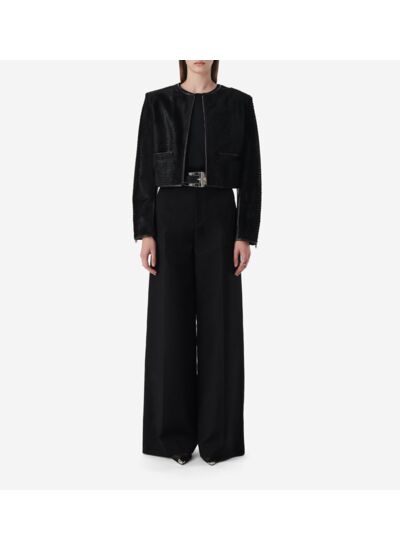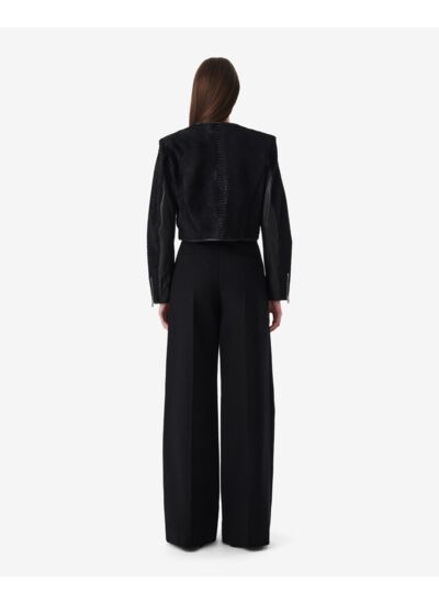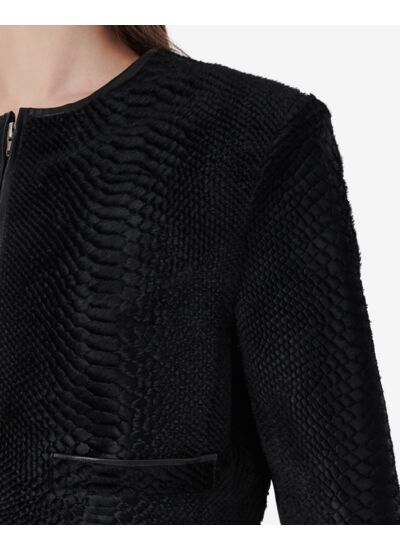Cette veste en cuir effet serpent est-elle confortable à porter toute la journée ? Oui, conçue en cuir de veau souple et doublée intégralement, elle offre une coupe ajustée qui épouse la silhouette sans restreindre les mouvements, garantissant un confort optimal même en port prolongé.
