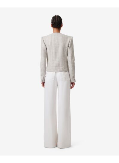Comment entretenir la veste en tweed Joulia ? Pour préserver la qualité du tweed et des détails métallisés, il est recommandé de suivre les instructions d’entretien spécifiques indiquées sur l’étiquette, généralement un nettoyage à sec professionnel afin d’éviter tout dommage.