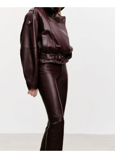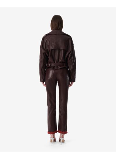 Quelle est la qualité du cuir utilisé pour la veste trench YURIA ? La veste est confectionnée en cuir d'agneau 100% certifié LWG, garantissant une matière noble, souple et durable, issue d’une production responsable.