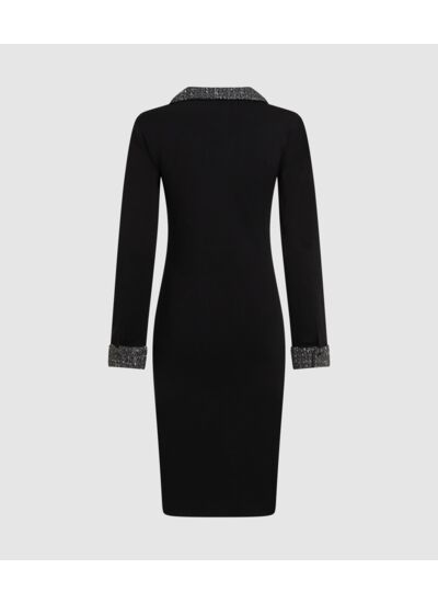 Conçue pour sublimer la silhouette, cette robe en maille fine joue sur les détails en boucle qui apportent une touche graphique et sophistiquée. Sa coupe ajustée épouse les formes sans contrainte, offrant un équilibre parfait entre confort et allure. Idéale pour une journée au bureau ou une soirée chic, elle se porte aussi bien avec des escarpins qu’avec des bottines.