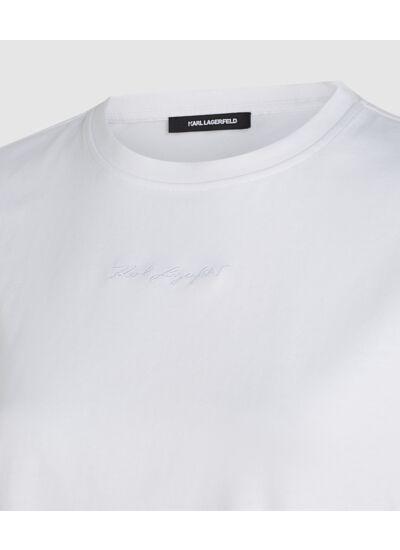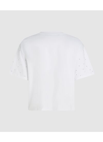 Fabriqué en coton de qualité supérieure, ce t-shirt présente une coupe boxy oversize avec manches longues embellies. L’étiquette Karl Lagerfeld souligne son authenticité et son positionnement haut de gamme.