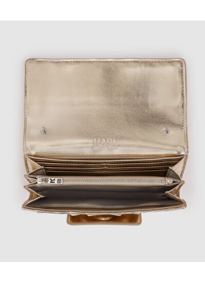 Conçue par Karl Lagerfeld, cette wallet on chain revisite le porte-monnaie classique avec une chaîne fine qui permet de la porter en bandoulière, libérant ainsi vos mains. Son design épuré et ses finitions soignées reflètent l’esprit avant-gardiste de la maison, parfait pour sublimer toutes vos tenues, du bureau à une soirée.