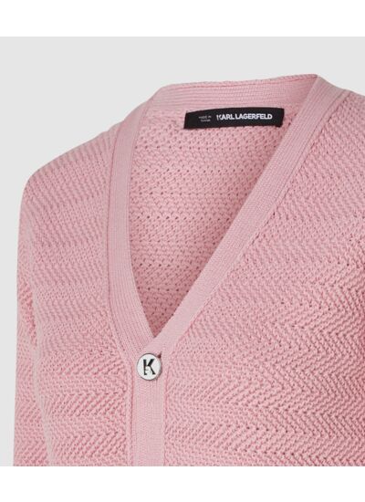 Fabriqué par Karl Lagerfeld, ce modèle présente une composition en maille fine, avec des boutons signature et des finitions nettes. Disponible en plusieurs tailles, il garantit un ajustement précis et confortable.