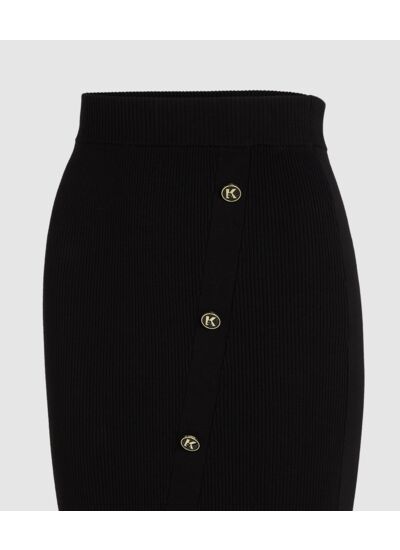 Fabriquée en tricot doux et stretch, la K Buttons Knit Midi Skirt présente une longueur midi classique, une taille élastique pour un ajustement parfait et des boutons décoratifs sur le devant pour une finition soignée.