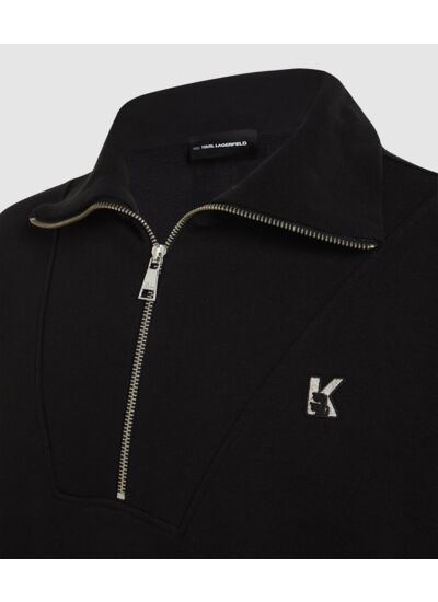 Conçu pour ceux qui recherchent une allure contemporaine sans compromis sur la qualité, ce sweatshirt mi-zip se distingue par son logo emblématique K, subtilement placé pour un impact visuel fort. Sa coupe ajustée met en valeur la silhouette tout en offrant une liberté de mouvement idéale. La matière douce et résistante assure un confort durable, que ce soit en ville ou lors de vos moments de détente.