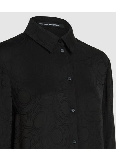 LUNA JACQUARD BLOUSE incarne l’élégance moderne avec une touche graphique unique. Cette blouse Karl Lagerfeld transforme chaque tenue en une déclaration de style affirmée.