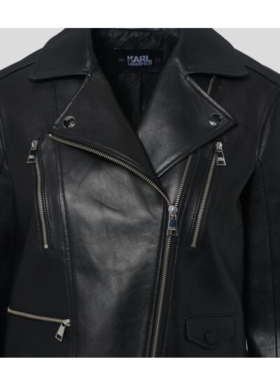 Fabriquée par Karl Lagerfeld, la Odina Biker Jacket est réalisée dans des matériaux de qualité supérieure, avec une fermeture zippée solide, des poches fonctionnelles et des détails métalliques discrets qui renforcent son caractère. Sa coupe cintrée assure un maintien parfait sans sacrifier le confort.