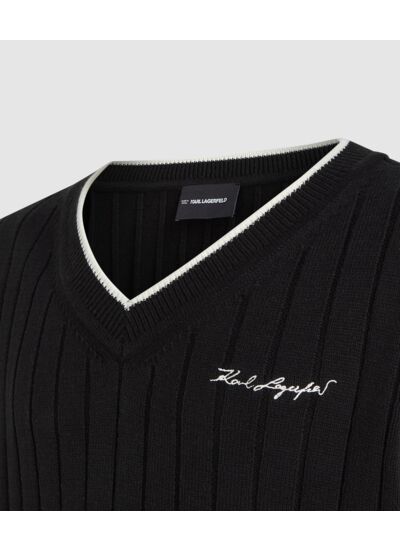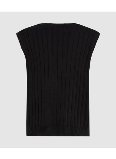 Fabriqué en maille de qualité, ce gilet présente une finition soignée avec un patch en caoutchouc emblématique de la marque Karl Lagerfeld. Coupe ajustée, sans manches, idéal pour superposer. Disponible en plusieurs tailles.