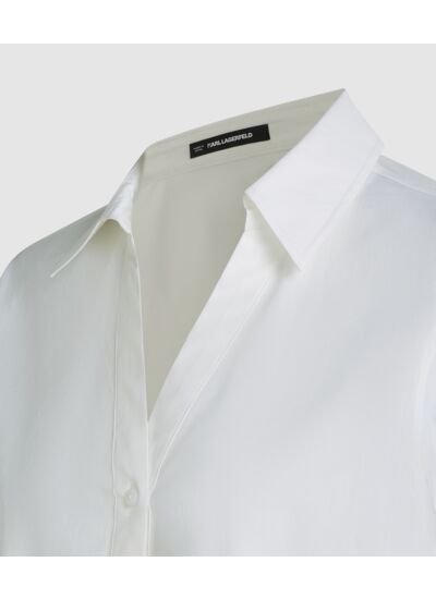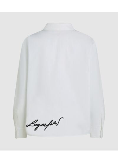 La Signature Edge Poplin Blouse incarne l’élégance contemporaine signée Karl Lagerfeld. Une pièce essentielle qui allie modernité et raffinement pour sublimer toutes vos tenues.
