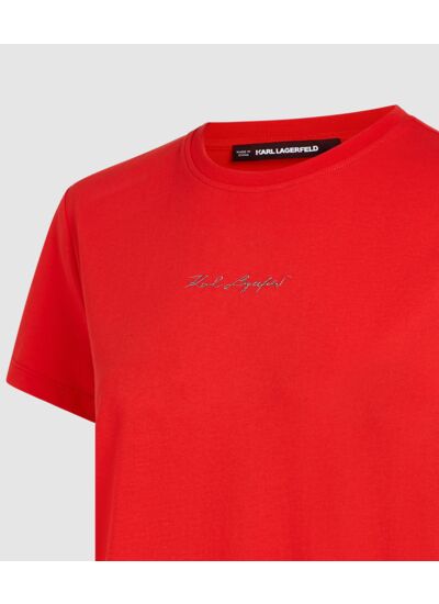 Affichez votre style avec le Silver Signature T-Shirt, un classique revisité par Karl Lagerfeld. Une pièce essentielle qui allie modernité et élégance discrète.