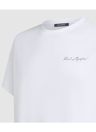 Affichez votre style avec le Silver Signature T-Shirt, un classique revisité par Karl Lagerfeld. Une pièce essentielle qui allie modernité et élégance discrète.