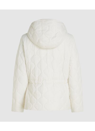 Fabriquée avec un tissu technique léger, la veste présente un matelassage en forme de vagues pour un effet visuel distinctif. Elle dispose d’une fermeture zippée intégrale et de poches latérales discrètes, pratiques pour garder vos essentiels à portée de main sans compromettre l’esthétique.