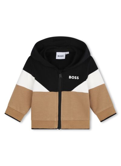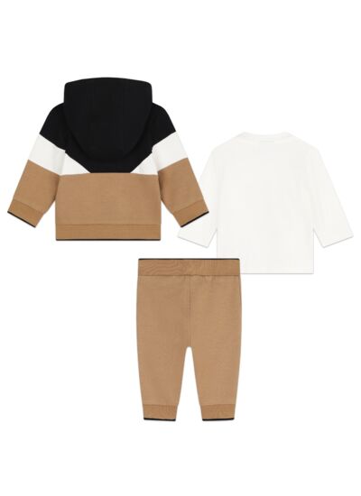 Ensemble 3 pièces essentiel avec cardigan à capuche, pantalon et tee-shirt. Cardigan et pantalon molleton gratté 95% coton issu de l'agriculture biologique / 5% élasthanne. Cardigan avec fermeture zippée, bord-côte rayé aux manches et dans le bas, imprimé siglé "BOSS" à la poitrine. Pantalon avec bord-côte rayé aux chevilles et à la taille, imprimé siglé "BOSS" sur le bord-côte cheville. Tee-shirt en jersey 95% coton issu de l'agriculture biologique / 5% élasthanne, fermeture pressionnée au col, imprimé double B fantaisie sur le devant. *VENDU DANS UNE BOITE CADEAU*