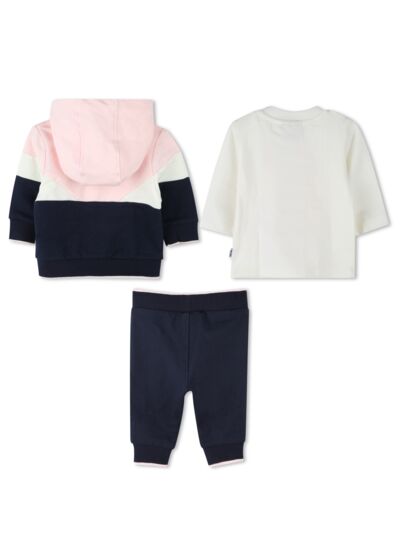 Ensemble 3 pièces essentiel avec cardigan à capuche, pantalon et tee-shirt. Cardigan et pantalon molleton gratté 95% coton issu de l'agriculture biologique / 5% élasthanne. Cardigan avec fermeture zippée, bord-côte rayé aux manches et dans le bas, imprimé siglé "BOSS" à la poitrine. Pantalon avec bord-côte rayé aux chevilles et à la taille, imprimé siglé "BOSS" sur le bord-côte cheville. Tee-shirt en jersey 95% coton issu de l'agriculture biologique / 5% élasthanne, fermeture pressionnée au col, imprimé double B fantaisie sur le devant. *VENDU DANS UNE BOITE CADEAU*