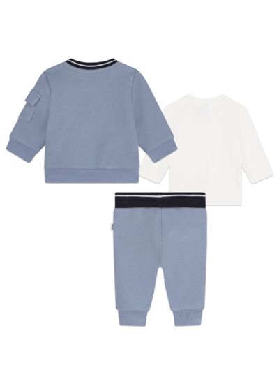 Ensemble de jogging 3 pièces avec cardigan, tee-shirt et pantalon. Cardigan et pantalon en piqué double-face coton / polyester. Cardigan à fermeture pressionné, bord-côte rayé au col, poche à rabat à la manche, badge panda roux gomme à la poitrine. Pantalon avec bord-côte rayé à la taille, deux poches plaquées avec rabat devant. Tee-shirt en jersey coton / élasthanne, fermeture pressionnée au col, impression siglé "BOSS" sur le devant. *VENDU DANS UNE BOITE CADEAU*