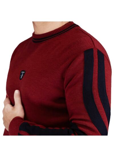 Le logo sur la manche gauche est-il résistant dans le temps ? Les bandes de tricots formant le logo oversize sont intégrées dans la maille, garantissant une tenue durable et une esthétique qui ne s’altère pas au fil des usages.