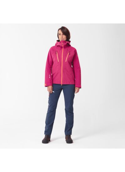 Quelle performance offre cette veste en termes de poids et fonctionnalité ? Elle combine un poids léger avec une haute résistance à l’abrasion et une fonctionnalité complète, idéale pour les montées exigeantes où chaque gramme et chaque détail comptent.