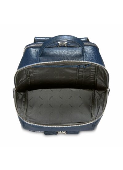 Comment est organisé l’intérieur du sac pour faciliter le rangement ? L’intérieur est équipé de deux compartiments zippés, une poche plaquée et deux passants pour stylos, offrant un espace bien structuré pour organiser vos effets personnels avec efficacité.