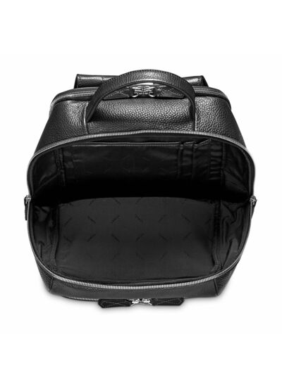 Aménagement intérieur: deux compartiments zippés, un compartiment matelassé pour ordinateur, un compartiment matelassé pour Ipad, une poche plaquée, deux passants stylos