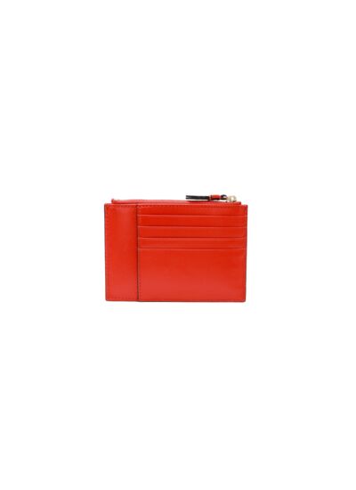Description : Porte carte zippée, cuir de vachette lisse, logo Lancel