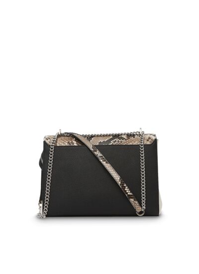 Comment se porte le sac Ninon et quelles options de port offre-t-il ? Ce modèle polyvalent se porte de jour comme de nuit grâce à sa bandoulière chaîne et cuir coulissante, qui permet plusieurs styles de port. Sa poignée maxi logo et son design graphique lui confèrent un look affirmé et urbain.