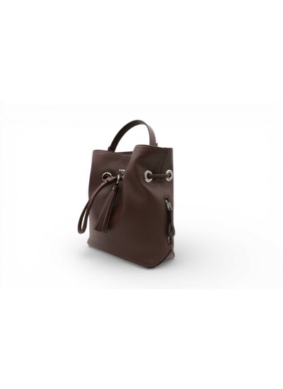 Comment se porte le sac seau Sacha ? Il offre plusieurs options de port grâce à sa poignée en cuir amovible pour un porté main élégant et sa bandoulière cuir ajustable et amovible pour un porté croisé pratique et moderne.